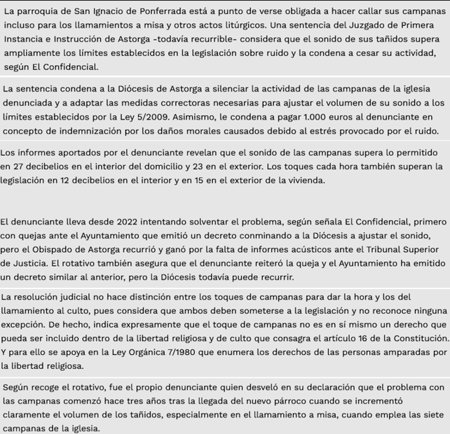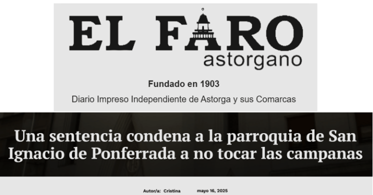 Fa uns dies ha sortit a la premsa, la denuncia d’un veí de Ponferrada (Bisbat d’Astorga), vers els problemes del so de les campanes de l’església de Sant Ignasi (a Ponferrada), i la intensitat del so que emeten.