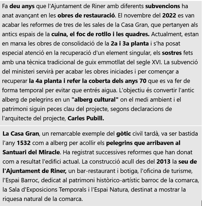 És una visita recomanable : s’agrairia una informació més ampla de l’indret, de les activitats i de l’estada que si pot fer, dels serveis de la cafeteria, o del marxandatge d’aquest indret, que podrien ajudar al seu manteniment i garantir un major nombre de visitants per assegurar la viabilitat i permanència d’aquests edificis en el temps i en les millors condicions…