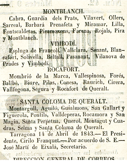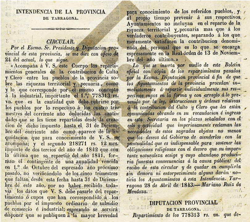 BOPT del 29 d’abril del 1843 :