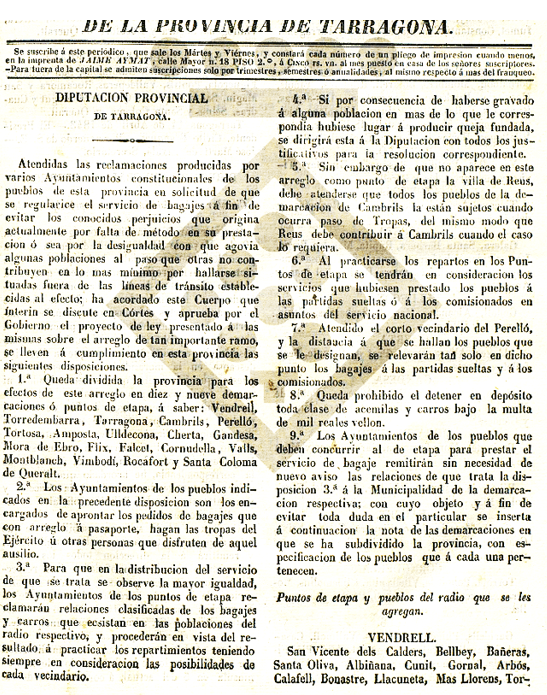 BOPT del 9 de maig de 1843 :