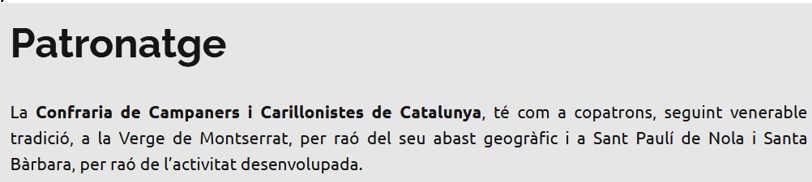 Els patronatges de la Confraria de Campaners i Carrillonistes de Catalunya