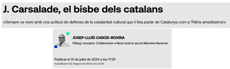 Fa un any i mig, en Josep Lluís Carod-Rovira, va publicar, a, aquest article a “naciodigital.cat”, que descriu la seva trajectòria personal, de recerca, les seves publicacions i la seva catalanitat. :