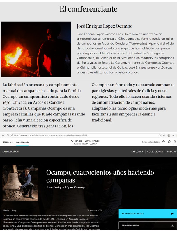 Un viatge a Galicia, ha de merèixer una visita a aquesta foneria, amb quatre segles de pervivència; segurament el seu origen es com el d’altres artesans de les campanes, l’estada en un lloc i altra, on cercaven una campana, la contractaven, i el Mestre campaner l’anava fent a peu d’església, començant cada vegada amb construir el forn, els motlles, i tots els treballs que comporta la fosa d’una campana, a peu de carrer.