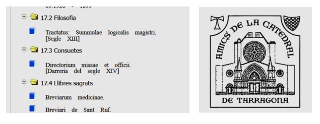 Imatge del índex on es troba el document, i l’anagrama dels “Amics de la Catedral de Tarragona” que han ajudat a laseva digitalització