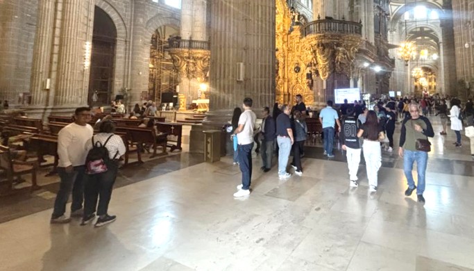 Un repic que va quedar amagat entre el soroll i la música de la “Feria de las Culturas Indígenas” que es feia a la “Plaza de la Constitución” davant mateix de la Catedral, i només es va poder escoltar des de dins del recinte catedralici; aquesta plaça anomenada també com “el zócalo” té una superficie de 46.800 m2, i es la segoma més gran del món.