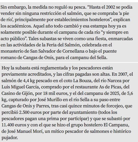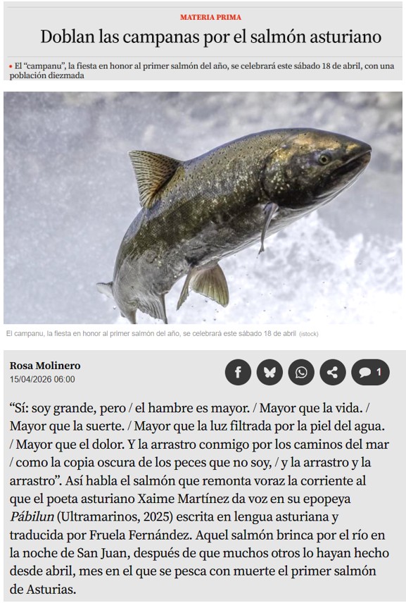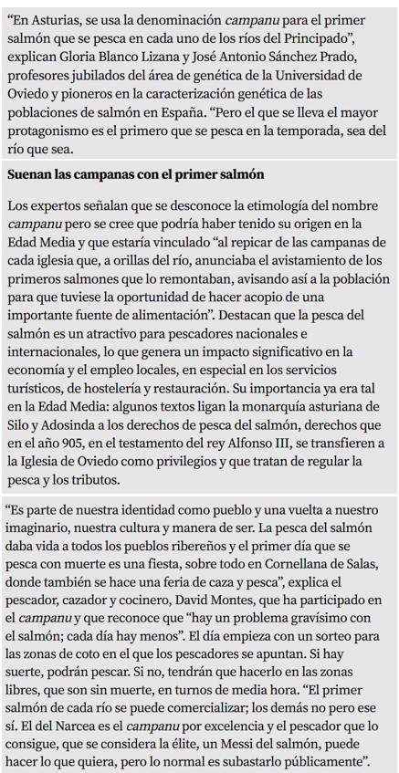 Aquest reportatge editat el passat dia 15 d’abril, a La Vanguardia, recull l’essència de la festa del “Campanu”, al Principat d’Astúries, una tradició de la importància que el salmó i la seva captura han tingut en la vida de moltes generacions com a base, i complement, de la seva alimentació.